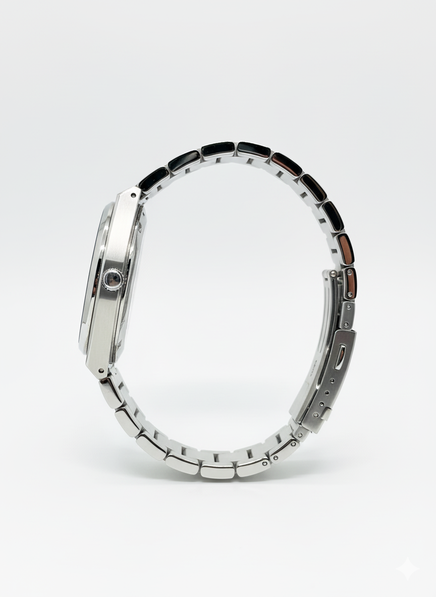 Make a bold statement with this Men’s Blue Dial Stainless Steel Watch, designed for modern gentlemen who appreciate class and confidence. Its elegant blue textured dial and polished metal strap...